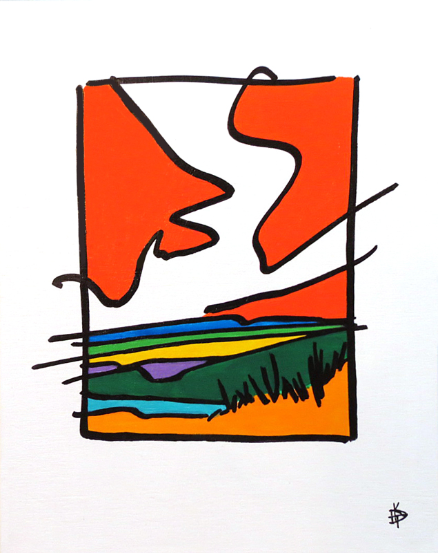 Landscape Acrylic, pen and ink, wood panel