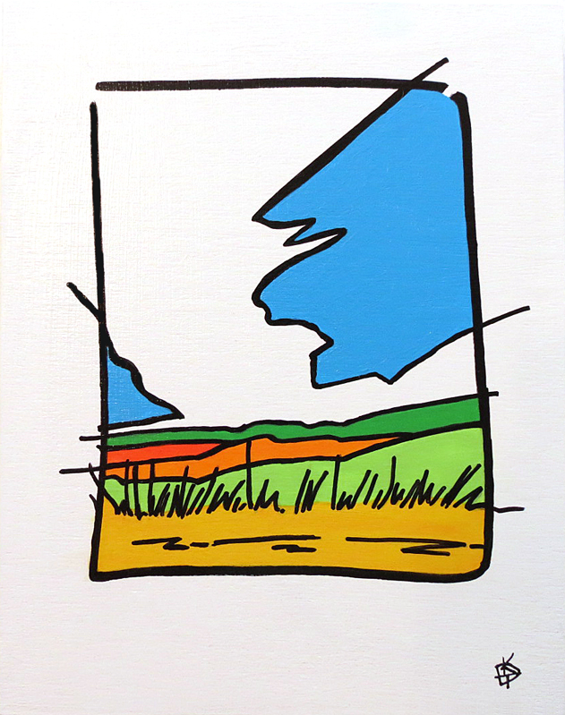 Landscape Acrylic, pen and ink, wood panel