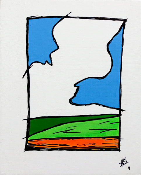 Landscape Acrylic, pen and ink, wood panel