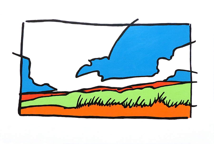Acrylic on panel, Landscape, Pen Drawing, Kansas Landscape
